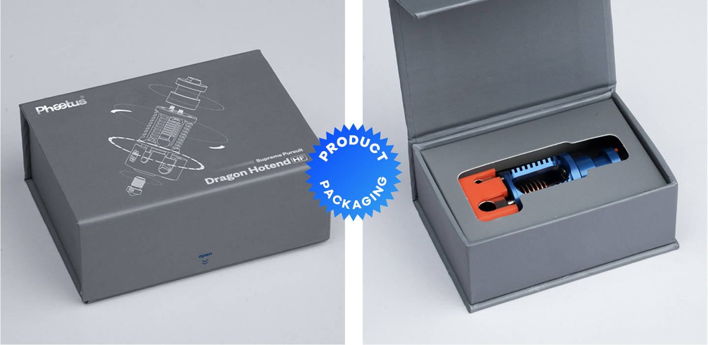 El hotend de impresión es el componente de hardware central de los equipos de impresión 3D. Un hotend de impresión calificado debe cumplir con la relación de tasa de flujo científica, de modo que el material no bloquee la ruptura del calor y la impresión general sea fluida. En respuesta a esta demanda, Phaetus ha lanzado una nueva generación de hotend de impresión 3D «Dragon Hotend». Dragon Hotend está compuesto por Heat Block, Heat Sink y heat break, que son la mejor combinación de kit de extrusión de impresión hotend formado por el equipo de I + D después de cientos de pruebas y depuración. Dragon hotend es el hotend de impresión 3D actualizado lanzado por Phaetus. kit de metal, la resistencia general a altas temperaturas es de hasta 500 ℃, el orificio interno de la rotura de calor es suave y la resistencia al movimiento es pequeña. Por lo tanto, los filamentos se derriten efectivamente y fluyen suavemente sin acumulación,
