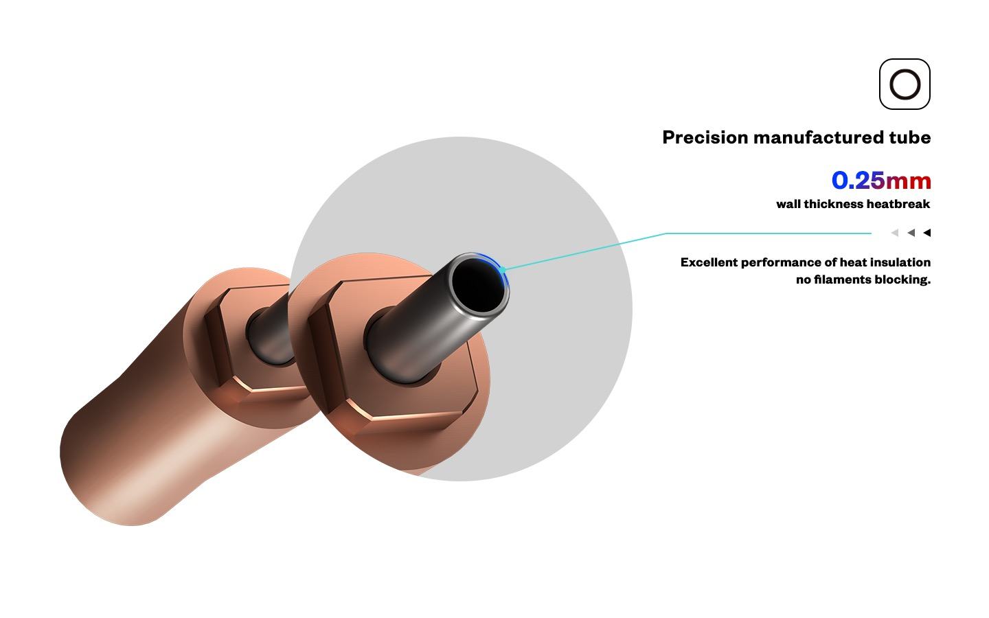 - 3. El diseño cónico de rotura de calor de metal, se ajusta estrechamente con el disipador de calor, la disipación de calor es más suficiente, cumple con los requisitos de la impresión de filamentos de alta temperatura.
