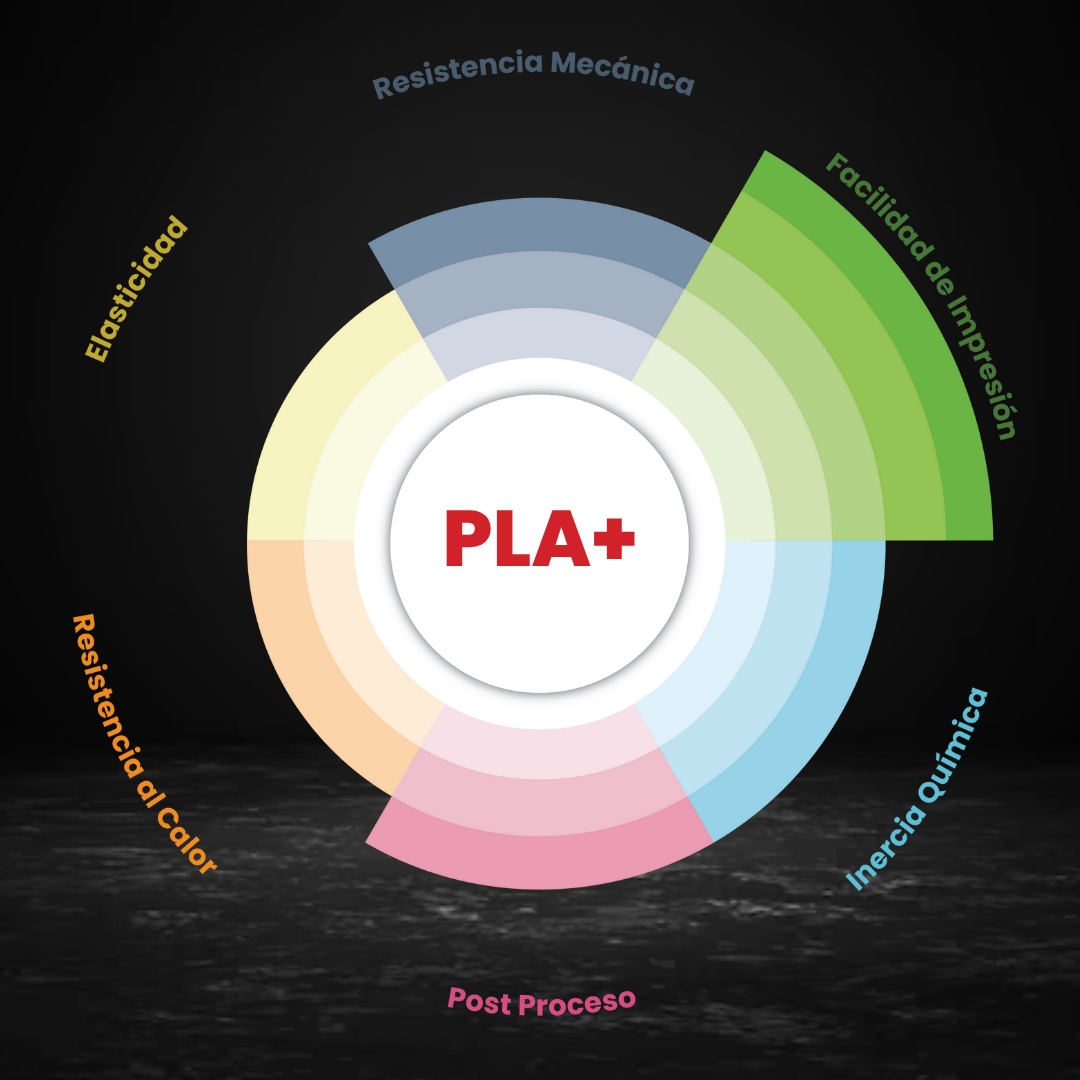 Este material se destaca por su calidad de exportación, superando ampliamente al PLA regular. Tus impresiones tendrán una rigidez excepcional y una superficie brillante.