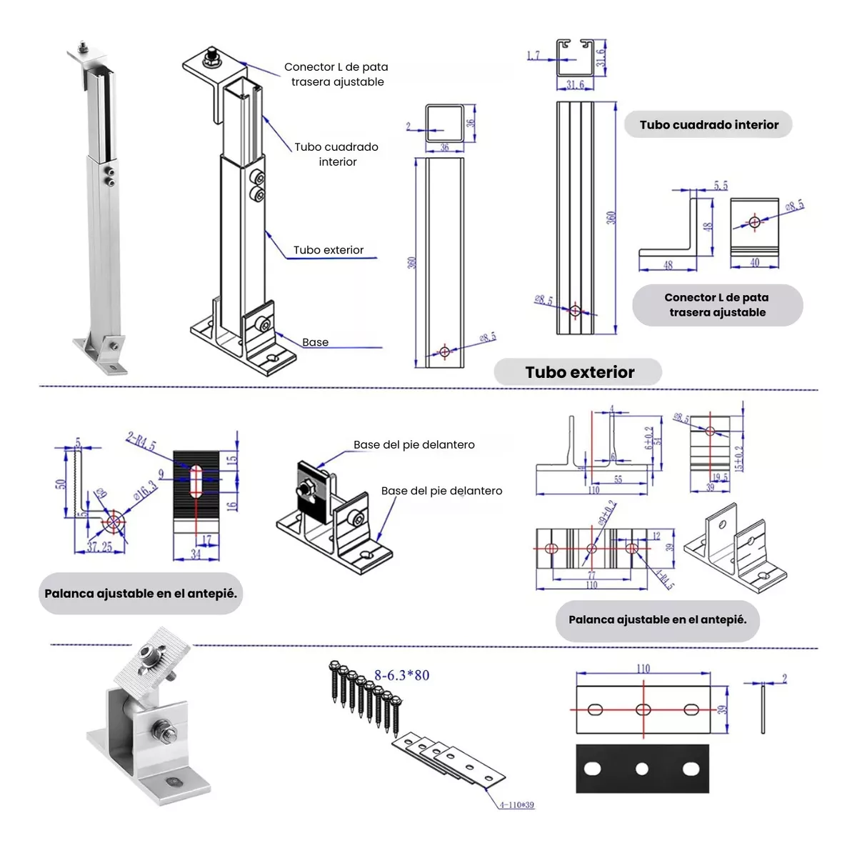 Soporte Kit Aluminio Montaje Para Panel Solar Inclinado
