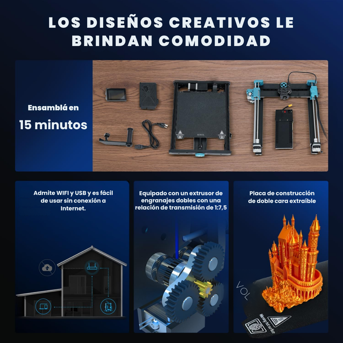 Doble eje Z para mayor precisión: Los robustos tornillos del doble eje Z y los potentes motores paso a paso aseguran movimientos precisos con una precisión de 0,001 mm.