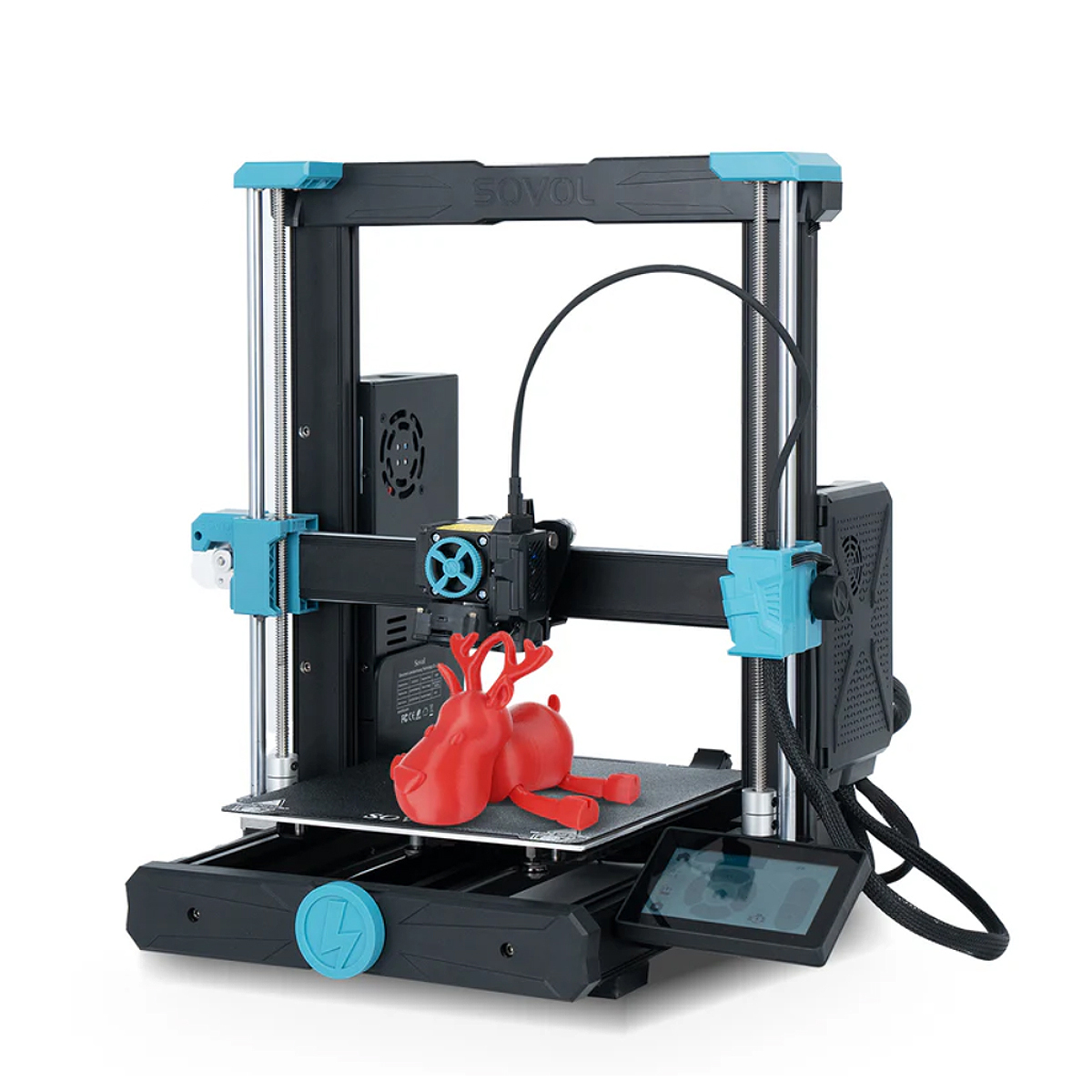 La Sovol SV06 es una impresora 3D FDM con un diseño modular con preciosos detalles en color turquesa. La impresora tiene una estructura clásica I3, lo que evita el desgaste de los engranajes y su reemplazo frecuente. Con su volumen de impresión de 220 x 220 x 250 mm, esta impresora de código abierto es ideal para el uso diario.