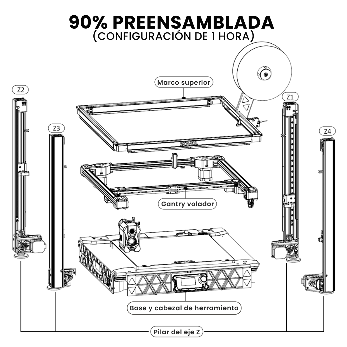 - Filamento soportado: PLA, PEGT, TPU, PEGT-CF, ABS, etc.
